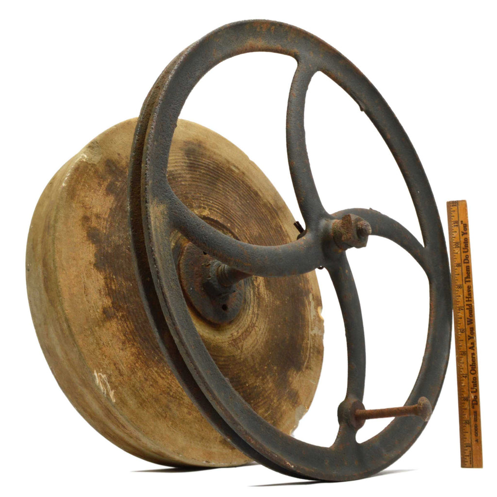 Antique 16" SHARPENING STONE w/ Original CAST IRON 17.5" WHEEL & CRANK HARDWARE!
