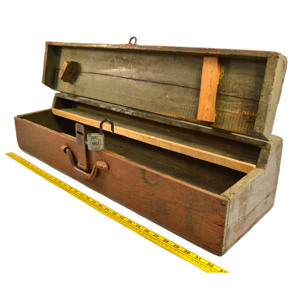 Antique HOMEMADE SAW TOOL BOX Carpenter's Chest + BONUS YALE PADLOCK Old Paint!