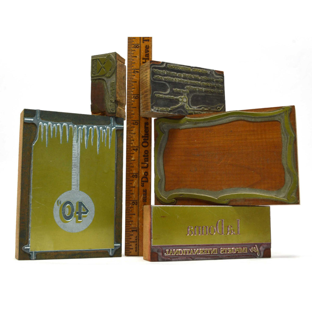 Antique WOOD-BACK PRINT BLOCK Printing Blocks LOT OF 5 Frame/Boarder ADVERTISING