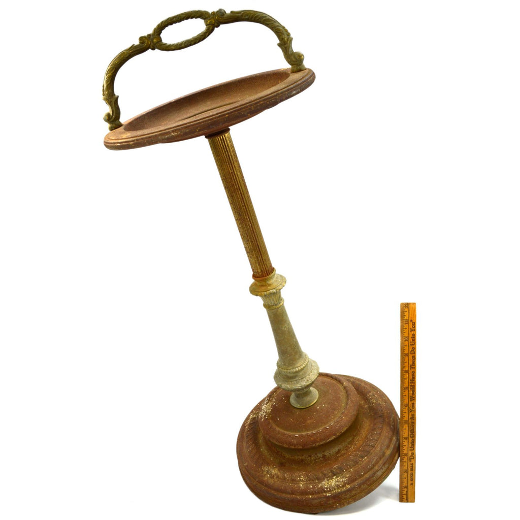 Vintage PEDESTAL ASHTRAY Mid-Century SMOKING STAND Brass & Steel WICKED PATINA!!