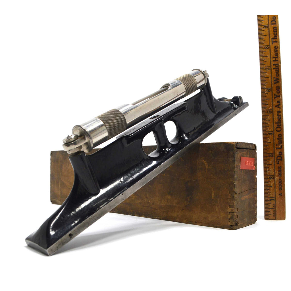 Being offered for sale is the vintage, early example STARRETT PRECISION MACHINIST LEVEL (with Ground, Cross-Check & Graduated Vials / triple vial/bubbles) in FINGER-JOINTED WOOD BOX, from circa the mid -to- late 20th century (best guess), as seen in the pictures/as described in the title. PLEASE SEE BELOW FOR IMPORTANT CONDITION NOTES. Being offered for sale as-found, uncleaned. May require a thorough detailing to bring to its full potential.