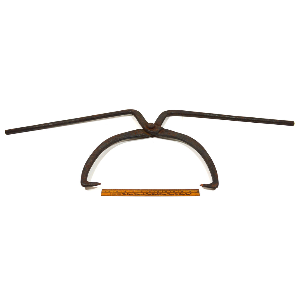 Vintage HEAVY-DUTY IRON TONGS Huge 41" Wide ICE-HAY-FARM Primitive GRABBER TOOL