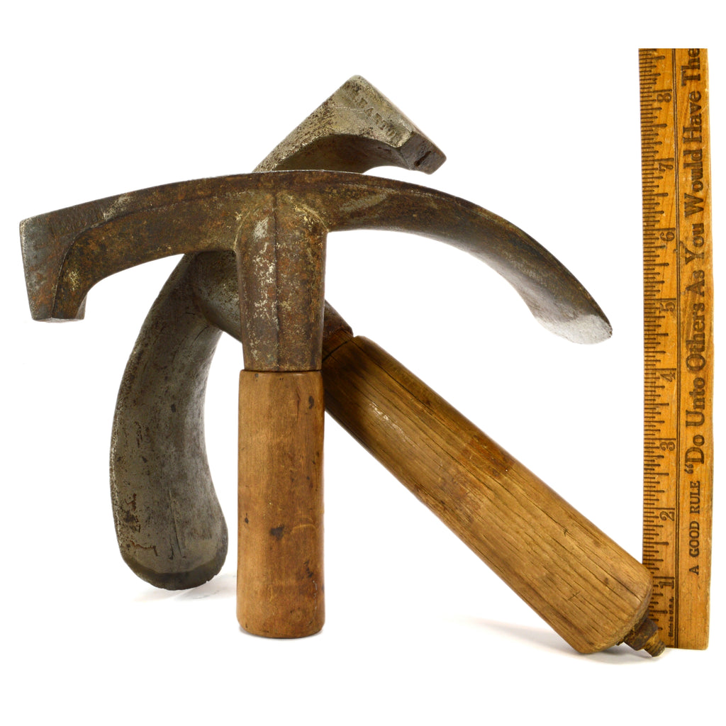 Larger one measures 9-1/2" tall, overall with an 8-1/2" wide head and 3-1/4" long blade. Smaller one measures 6-3/4" tall, overall with an x 8" wide head and 3-1/8" blade. Total weight of lot is 7 lbs. 0.5 oz..