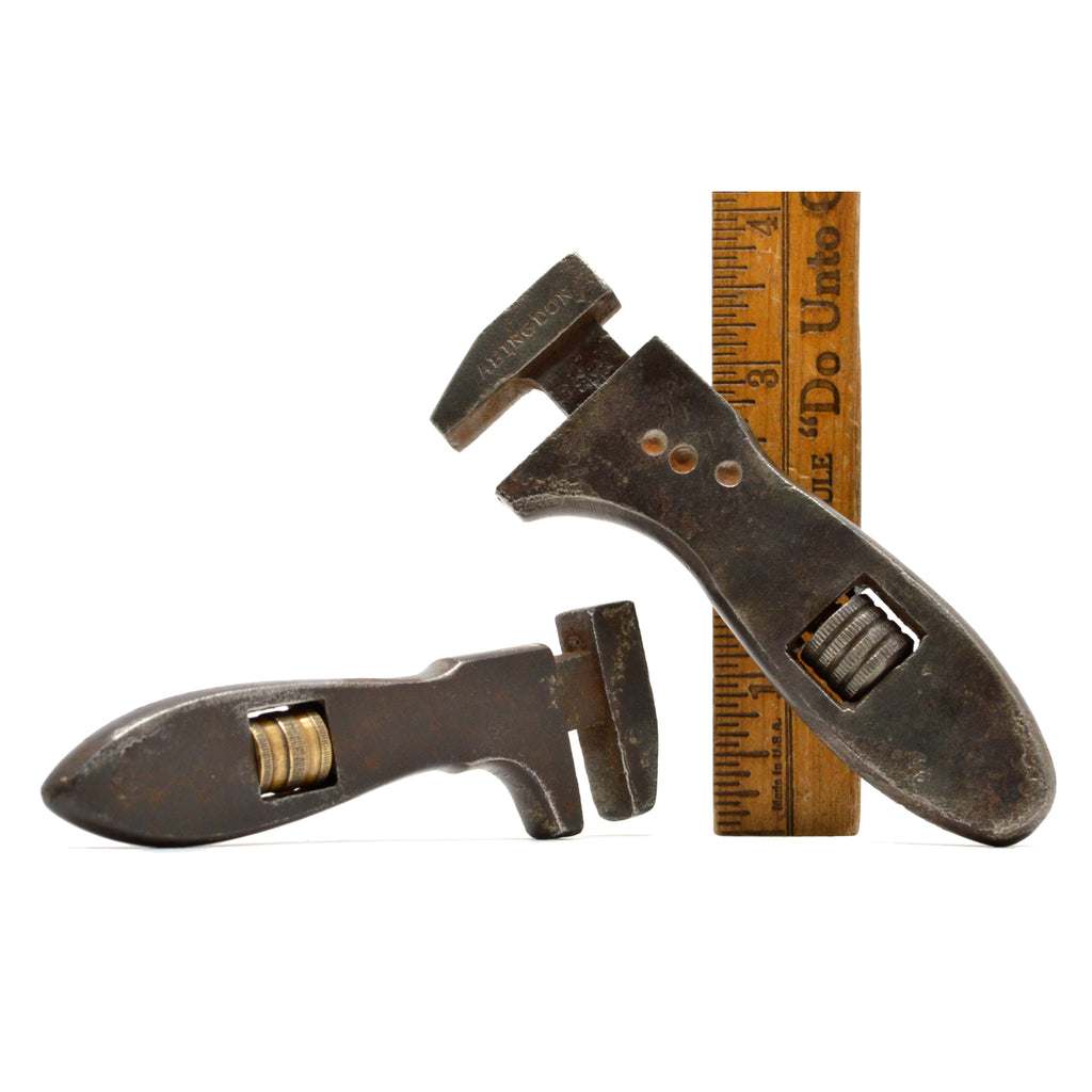 Being offered for sale is the lot of 2 small BICYCLE ADJUSTABLE WRENCHES (one marked "ABINGDON" & "TRADE *illegible logo* MARK" & "No. " (actual number not visible) and the other unmarked but possibly German and/or of European decent (as per references found during research), both from circa the early 20th century (best guess), as seen in the pictures/as described in the title. PLEASE SEE BELOW FOR IMPORTANT CONDITION NOTES. Being offered for sale as-found, uncleaned. May require a thorough detailing to bring to its full potential. SATISFACTION GUARANTEED or your money back...no questions asked!