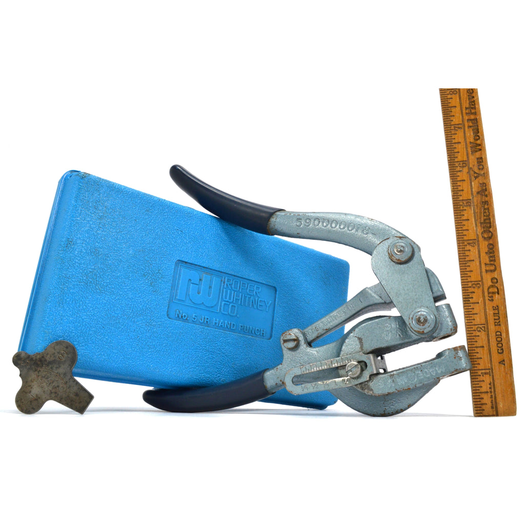 Vintage ROPER WHITNEY CO. "No. 5 JR. HAND PUNCH" w/ PUNCHES & TOOL in HARD CASE!