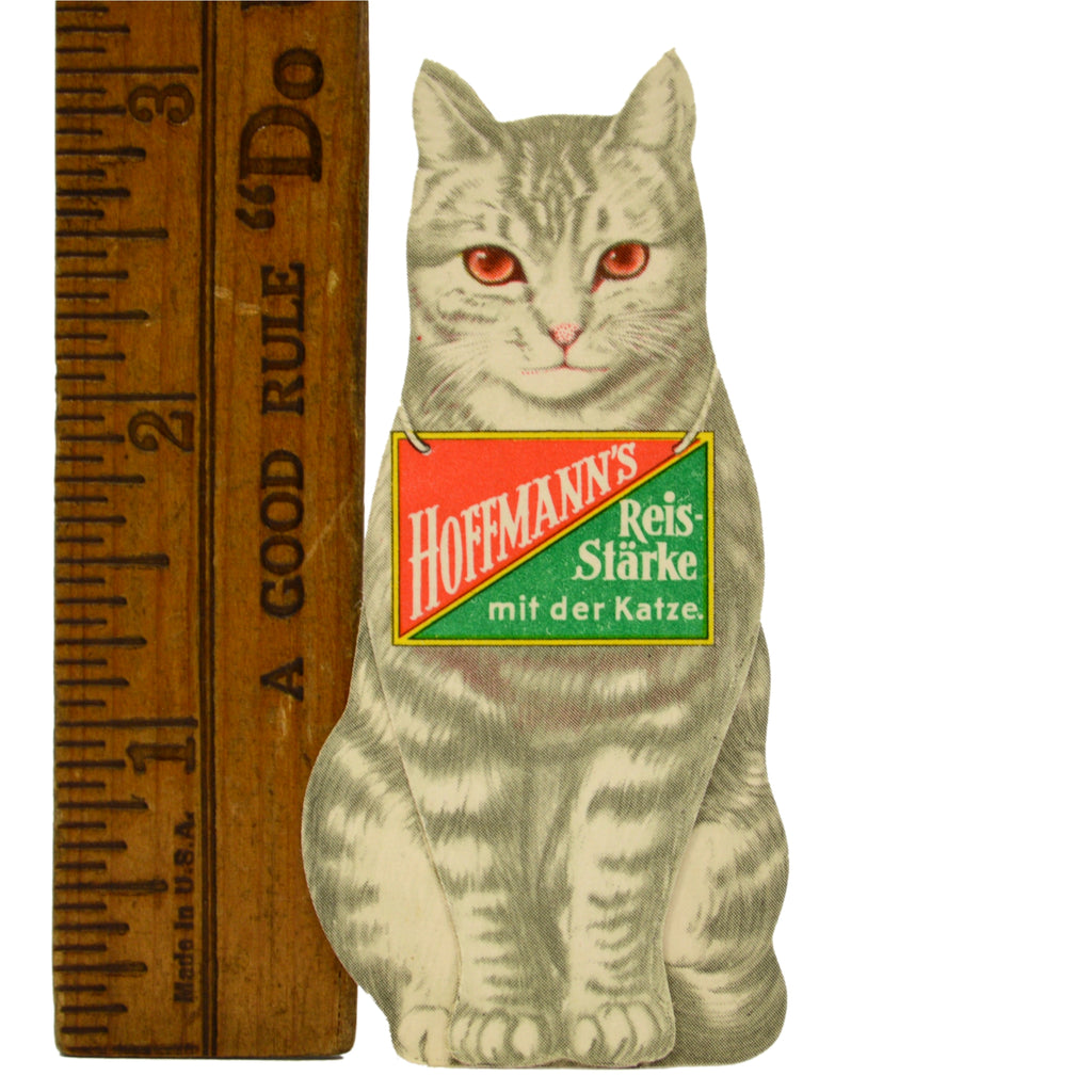 Vintage CARDBOARD DIECUT CAT Promo Ad "HOFFMANN'S REIS-STARKE" Rice Starch GRAY
