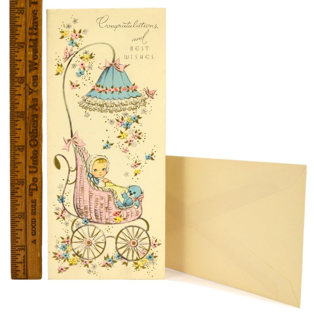 Vintage GREETING CARD Unused! CONGRATULATIONS...New Baby in Carriage #25BA7-81