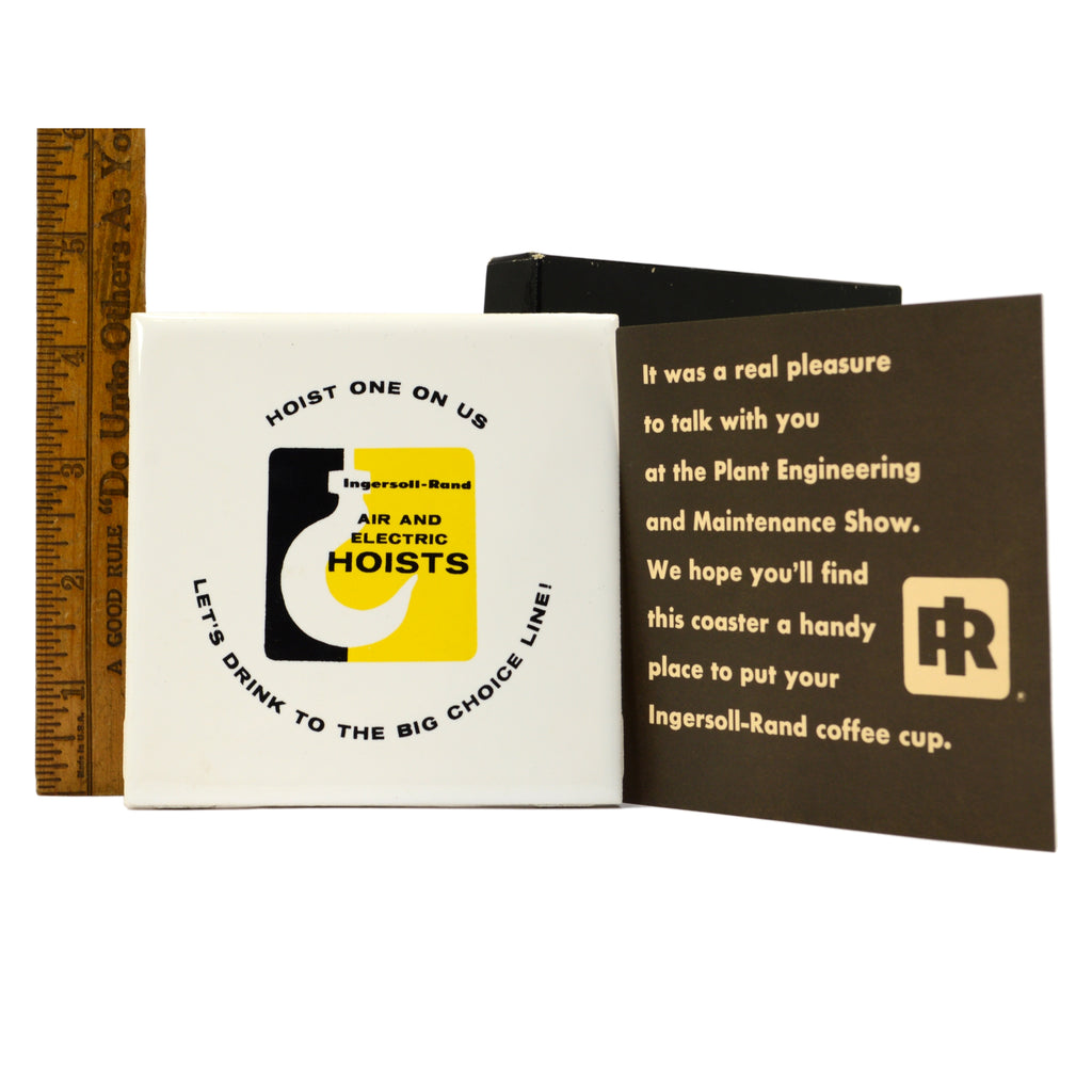 Vintage INGERSOLL-RAND PROMOTIONAL PORCELAIN COASTER Air & Electric Hoists RARE!