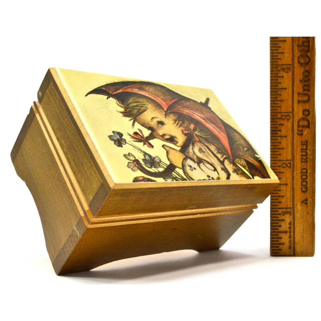 Vintage REUGE MUSIC BOX Stickered "EJB" Switzerland Made LITTLE GIRL w/ UMBRELLA