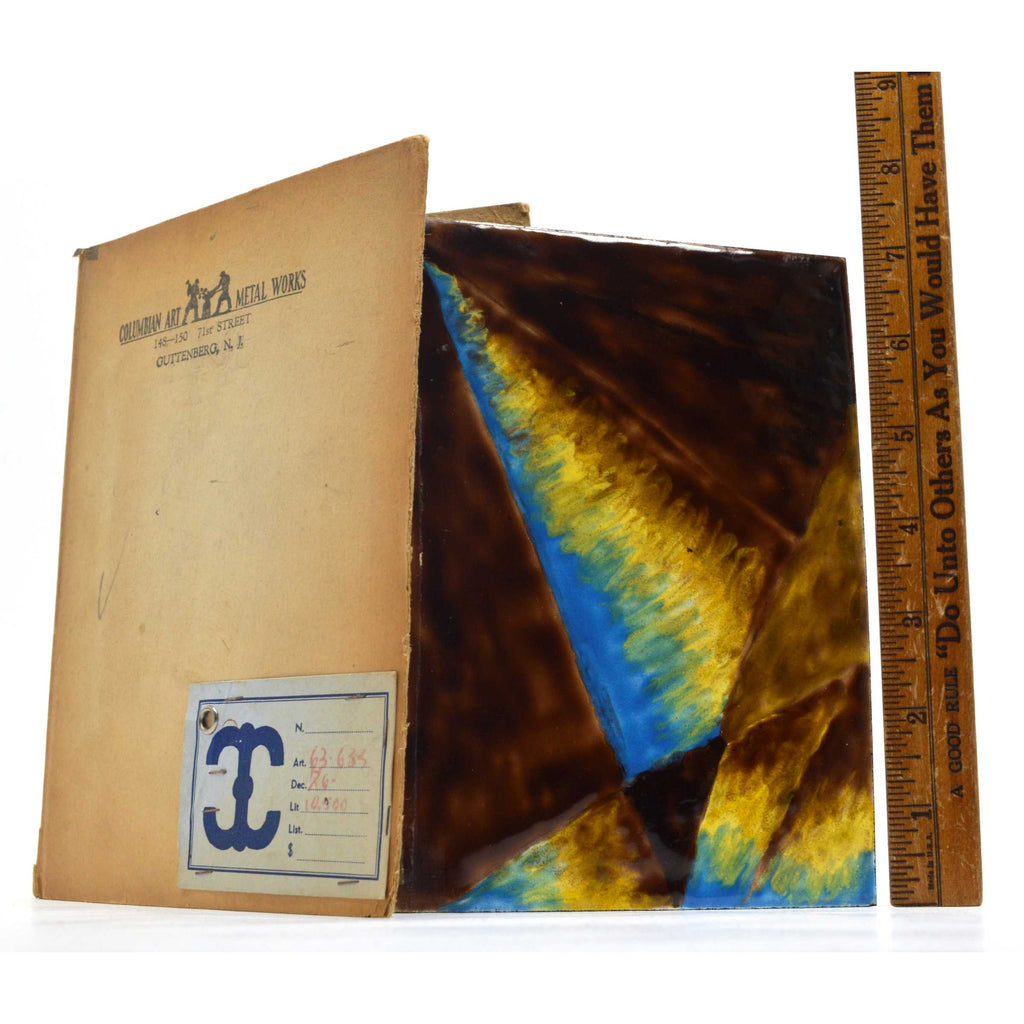Being offered for sale is the rare & unusual (zero info found online about these) antique PAINTED METAL TILE in ORIGINAL CARDBOARD (we don't actually know what it is/what use it is intended for - thinking it could be a salesman's sample of some sort) by "COLUMBIAN ART METAL WORKS" of Guttenberg, N.J. from circa the early 20th century (best guess), as seen in the pictures/as described in the title. PLEASE SEE BELOW FOR IMPORTANT CONDITION NOTES. Being offered for sale as-found, uncleaned. May require a thorough detailing to bring to its full potential.