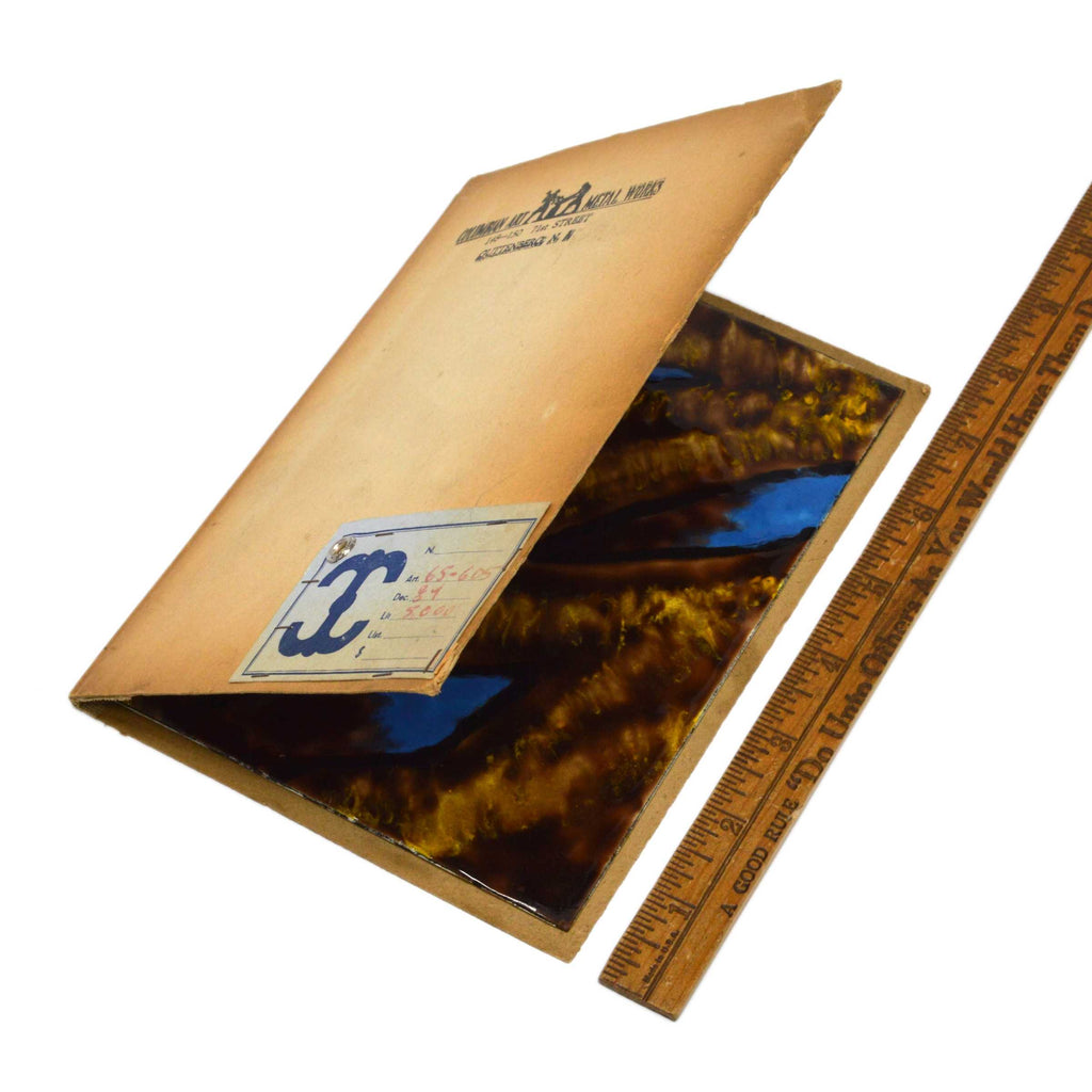 Being offered for sale is the rare & unusual (zero info found online about these) antique PAINTED METAL TILE in ORIGINAL CARDBOARD (we don't actually know what it is/what use it is intended for - thinking it could be a salesman's sample of some sort) by "COLUMBIAN ART METAL WORKS" of Guttenberg, N.J. from circa the early 20th century (best guess), as seen in the pictures/as described in the title. PLEASE SEE BELOW FOR IMPORTANT CONDITION NOTES. Being offered for sale as-found, uncleaned. May require a thorough detailing to bring to its full potential.