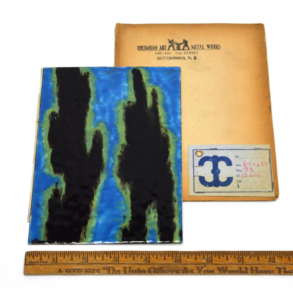 Being offered for sale is the rare & unusual (zero info found online about these) antique PAINTED METAL TILE in ORIGINAL CARDBOARD (we don't actually know what it is/what use it is intended for - thinking it could be a salesman's sample of some sort) by "COLUMBIAN ART METAL WORKS" of Guttenberg, N.J. from circa the early 20th century (best guess), as seen in the pictures/as described in the title. PLEASE SEE BELOW FOR IMPORTANT CONDITION NOTES. Being offered for sale as-found, uncleaned. May require a thorough detailing to bring to its full potential.