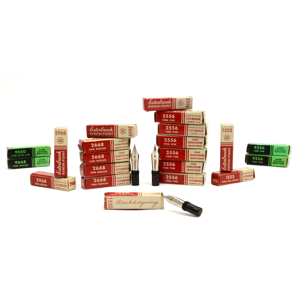 Being offered for sale is the lot of 21 brand new/new old stock (NOS) ESTERBROOK "DURACROME RENEW-POINT" REPLACEMENT NIBS/TIPS (mixed models/types see below for list of all that is included), as seen in the pictures/as described in the title. PLEASE SEE BELOW FOR IMPORTANT CONDITION NOTES. SATISFACTION GUARANTEED or your money back...no questions asked!