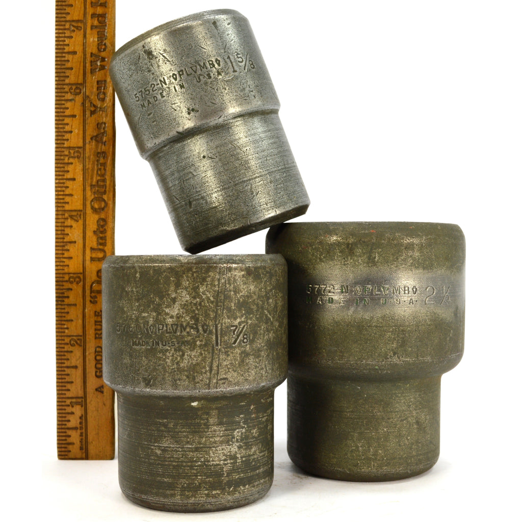 Being offered for sale is the lot of 3 vintage PLOMB (all marked "PLVMB") 1" DRIVE, 12-POINT SOCKETS (included; (1) 2-1/4" (No. 5772-N), (1) 1-7/8" (No. 5760-N) and (1) 1-5/8" (No. 5752-N)), all from circa the 1940's (as per internet research), as seen in the pictures/as described in the title. PLEASE SEE BELOW FOR IMPORTANT CONDITION NOTES. Being offered for sale AS-FOUND, uncleaned. May require a thorough detailing to bring to their full potential. SATISFACTION GUARANTEED or your money back...no questions asked!